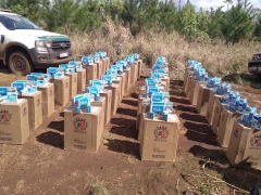 “Continuando con el registro del interior del vehículo, “los efectivos confirmaron que dentro del habitáculo y del compartimiento de carga se encontraban acondicionadas 20 cajas de cartón que contenían 20.000 paquetes de cigarrillos de origen extranjero”, indicaron los voceros del Escuadrón 49.