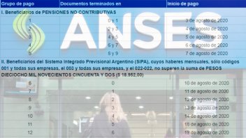 La Anses dio a conocer el cronograma de pago a los beneficiarios de las Prestaciones del Sistema Integrado Previsional Argentino (Sipa), jubilados y pensionados, correspondiente al mes de agosto de 2020. También el de la AUH, cuyos beneficiarios también percibirán el Ingreso Familiar de Emergencia.