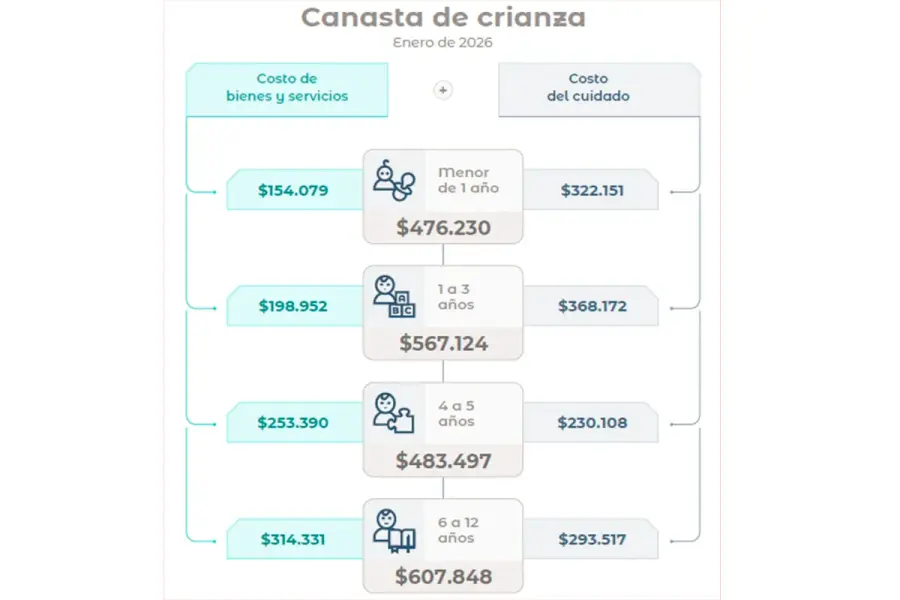 Según pudo saber la Agencia Noticias Argentinas, los números medidos por el INDEC para la canasta de crianza durante el mes de enero de 2026, por edades, se ubicaron por encima de $400.000 y por debajo de $700.000 por hijo.