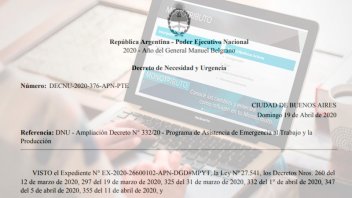 El decreto establece también que este paquete de medidas podrá extenderse <b>"hasta el 30 de junio, inclusive"</b>, aunque "para las actividades, empresas y trabajadores independientes que siguieran afectados por las medidas de distanciamiento social, aun cuando el aislamiento social preventivo y obligatorio haya concluido, los beneficios podrán extenderse hasta el mes de octubre de 2020 inclusive".