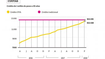 Su seguimiento muestra que, <b>aun beneficiados por el tramo de tasa fija que les caducará en un año, los que eligieron la opción tradicional seguirán pagando una cuota de $12.435, como desde entonces</b>. Pero <b>los que se endeudaron por UVA y habían comenzado con una cuota de $7915 en abril de 2016 pasarán a pagar una de $ 12.428 el mes próximo.</b> Esto quiere decir que lo que era una diferencia de $4520 (57%), por la sostenida inflación, quedó reducida a apenas 7 pesos (0,06%).