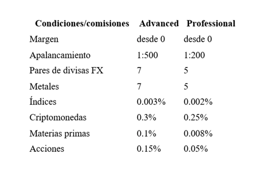 Las cuentas Advanced y Professional, con depósitos de 10,000 y 20,000 dólares, ofrecen condiciones aún más favorables: