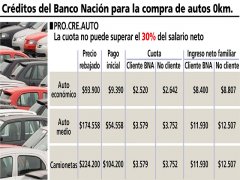 Luego del lanzamiento hubo muchas consultas de interesados en las distintas sucursales del Banco Nación, que es la entidad que llevará a cargo la operatoria de otorgamiento de préstamos. La sucursal Paraná del BNA no fue la excepción. “Pese a que en un rato juega la Selección (de fútbol), la cantidad de gente que está para hacer consultas sobre los créditos de autos es enorme”, contó ayer por la mañana una integrante del equipo del Área Legales del Nación de calle San Martín. Cerca del mediodía, en el banco los teléfonos tampoco paraban de sonar para obtener detalles de este sistema de créditos. “Preguntan por la documental que hay que presentar y, desde acá, se le da una información general, porque por ahora no hay un reglamentación de cómo se van a otorgar los créditos”, apuntó la empleada consultada por El Diario. Para quienes tienen la cuenta sueldo en la entidad bancaria, la tasa será del 17%, para los demás el 19%. El otro dato es que los créditos serán a sola firma, esto es que no habrá codeudor.
