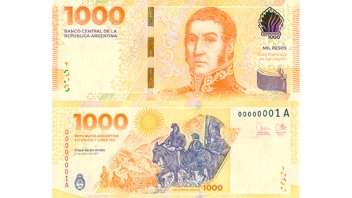 El Banco Central de la República Argentina (BCRA) puso este viernes en circulación el nuevo billete de $1000 con la imagen de José de San Martín, el cual será distribuido progresivamente a través de la red de sucursales bancarias a todo el país. De esta manera, se da inicio a una nueva familia de billetes que marca la recuperación de figuras históricas que forjaron nuestro país.