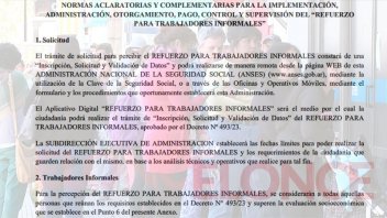 Por otra parte, el refuerzo para informales se abonará a través de una transferencia bancaria en la cuenta de la persona solicitante quien deberá informar la Clave Única Bancaria (CBU).