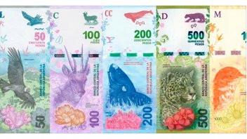 El actual modelo de billetes denominado "Animales" se remonta a mediados de 2016, durante la gestión de Mauricio Macri, cuando el Banco Central (BCRA), a cargo de Federico Sturzenegger, emitió billetes con animales de la fauna autóctona, incluyendo al guanaco, el cóndor, la taruca y la ballena franca austral en las denominaciones de $20, $50, $100 y $200; y el yaguareté y el hornero en los de $500 y $1000. Fuente: (Télam)