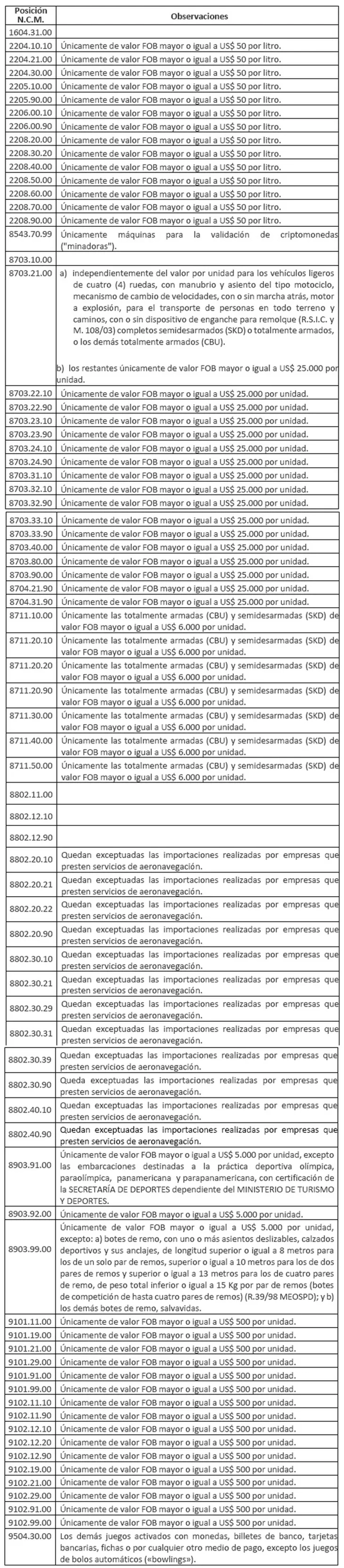 El tributo para este caso se aplicará para la importación de mercaderías incluidas en las posiciones arancelarias de la Nomenclatura Común del Mercosur (N.C.M).