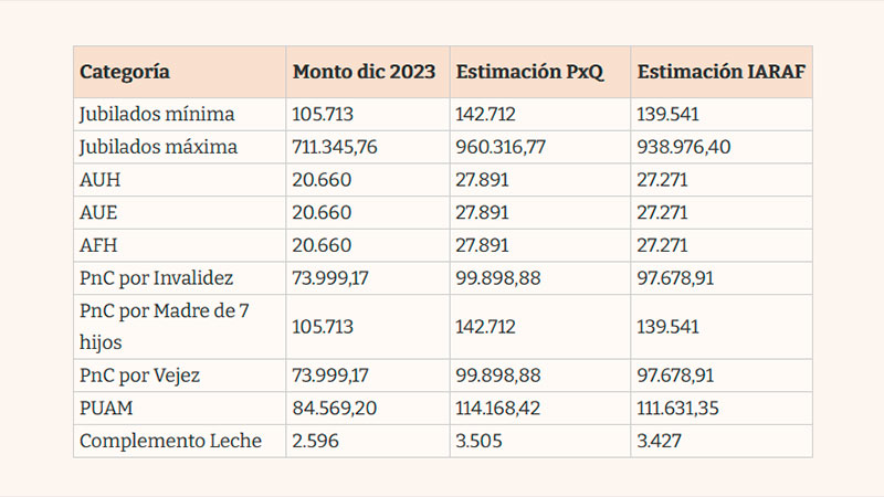 "Los haberes podrían subir en torno a 35 por ciento en marzo con una inflación que, en el trimestre diciembre-enero-febrero, podría ser mayor al 76 por ciento", señalaron desde la consultora PxQ liderada por Emmanuel Álvarez Agis. Para el Instituto de Análisis de la Realidad Fiscal (IARAF), el incremento será sólo de 32%.