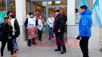 Trabajadores nucleados en La Bancaria realizaron este vienes una retención de servicios, durante dos horas, en una de las sucursales de Santander Río en Paraná, además de una volanteada sobre calle Buenos Aires.