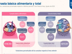 En tanto, la Canasta Básica Alimentaria (CBA), que marca los ingresos que se deben superar para no ser indigente, también aumentó 1% en el octavo mes de 2025.