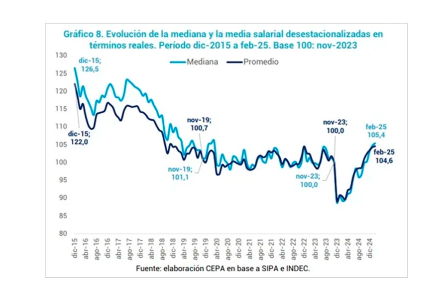 Las remuneraciones medidas por SIPA, tanto la promedio como la mediana, se ubicaron en febrero por encima del último mes de administración kirchnerista. (Fuente: NA)