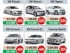 A la decisión de la marca francesa, le siguió Volkswagen, que adoptó la misma política y envió a su red de concesionarias las nuevas listas con estas insólitas rebajas. El caso más llamativo es el del modelo Passat que de $ 911.414 que costaba la semana pasada, vale hoy $ 414.860, un 54% menos. Otro caso curioso de esta terminal es la Touareg Hybrid que de un día para el otro redujo su precio en $ 800.000.