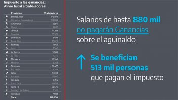 La medida beneficia a 513.000 trabajadores de todo el país que se encuentran sujetos a retenciones del impuesto a las Ganancias y registran salarios brutos mensuales de entre $ 506.230 y $ 880.000. En este sentido, más del 50% de los trabajadores que hoy pagan el impuesto a las Ganancias están alcanzados por el beneficio.