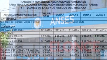 Según corroboró Elonce, las asignaciones por hijo y prenatal, que se determinan por rango de ingresos familiares (IGF) serán las siguientes a partir de diciembre:
