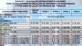 Las asignaciones por hijo y prenatal, que se determinan por rango de ingresos familiares (IGF) serán las siguientes: