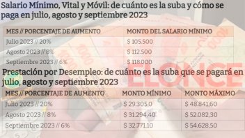 El Ministerio de Trabajo oficializó este lunes el incremento del 34% del Salario Mínimo, Vital y Móvil (SMVM) a liquidarse en tres tramos durante julio, agosto y septiembre 2023. Los detalles de la resolución.