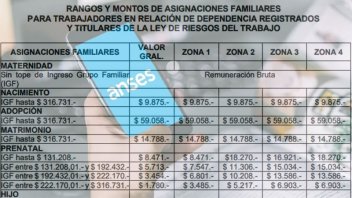 Según corroboró Elonce, las asignaciones por hijo y prenatal, que se determinan por rango de ingresos familiares (IGF) para activos, desempleados, veteranos de Malvinas y jubilados y pensionados, serán las siguientes a partir de diciembre: