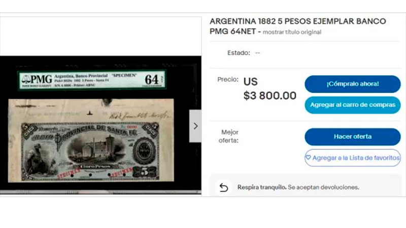 Una persona conservó esta reliquia de 141 años y la puso en venta en la plataforma de eBay. El argentino pidió nada más ni nada menos que u$s 3.800 por el papel, que al 5 de junio de 2023 equivale a $ 1.873.400. Fuente: (ElCronista)
