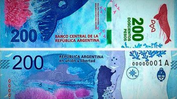 Los amantes de la numismática buscan el billete de $ 200 con furor. Puede ser reconocido por sus colores azules y blanco. Además, tiene impresa la imagen de la ballena franca austral, mamífero característico de las cosas del Atlántico Sur.