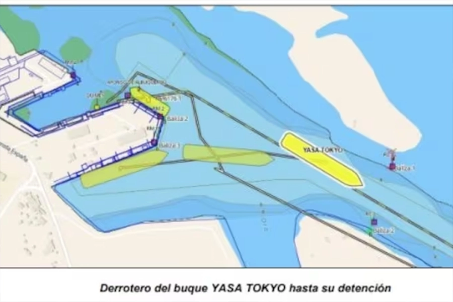 El carguero Yasa Tokyo quedó inmovilizado a metros de zarpar rumbo a Angola. La inesperada sedimentación del canal reavivó las tensiones sobre quién debe pagar las obras de dragado. Está detenido desde hace 18 días.