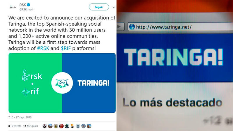 La compañía especializada en "blockchain" IOVLabs, creadora de la red RSK basada en Bitcoin y la economía de "tokens", RIF anuncia la adquisición de <b>Taringa!, la red social argentina. Que cambiará ahora?</b>.