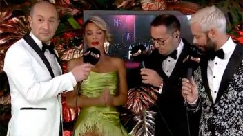 Los panelistas de La jaula de la moda Fabián Medina Flores, Mariano Caprarola y Claudio Cosano fueron los encargados de comentar los diferentes estilos de las celebridades. Y Sol, tras desfilar por la alfombra, al mostrar el profundo tajo de su diseño ¡Medina Flores le levantó el vestido de más!