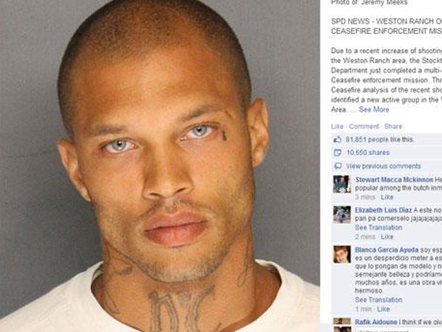 Jeremy Meeks se volvió una sensación en unas pocas horas. Cuando la policía de Stockon, California, compartió una foto de prontuario con su cara para comunicarle a la sociedad que lo habían apresado, miles de mujeres se volvieron locas con la facha de este convicto y ex miembro de una violenta pandilla.
