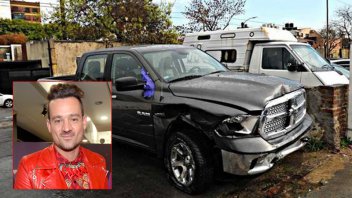 Según puede verse en las imágenes, la camioneta de Chano Charpentier choca mientras avanza en el mismo sentido de circulación de la calle. También se ve que varias personas vienen persiguiendo a la camioneta.