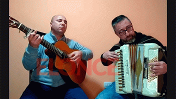 El músico diamantino, radicado en Crespo, Ariel Cuello y su compañero de acordeón y coros, Daniel Asamuya deleitaron a los espectadores del programa Peña Entre Todos, con grandes éxitos de la región.