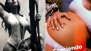 El fin de semana, la modelo mostró el crecimiento de su pancita desde la intimidad de su hogar. Recostada y en ropa interior, en la dulce imagen donde se la ve acariciando su panza de tres meses escribió: "Creciendo Porotito", junto a un emoji de un corazón.
