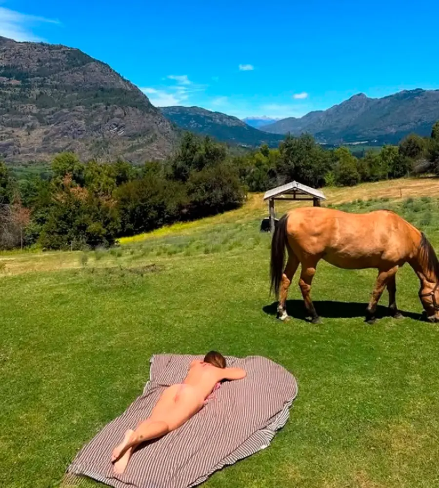 La publicación no tardó en volverse viral. En la imagen, la actriz aparece tomando sol, con un bikini que resalta su estilo natural y descontracturado, enmarcada por montañas, vegetación y un cielo despejado que terminó de completar una escena digna de postal.