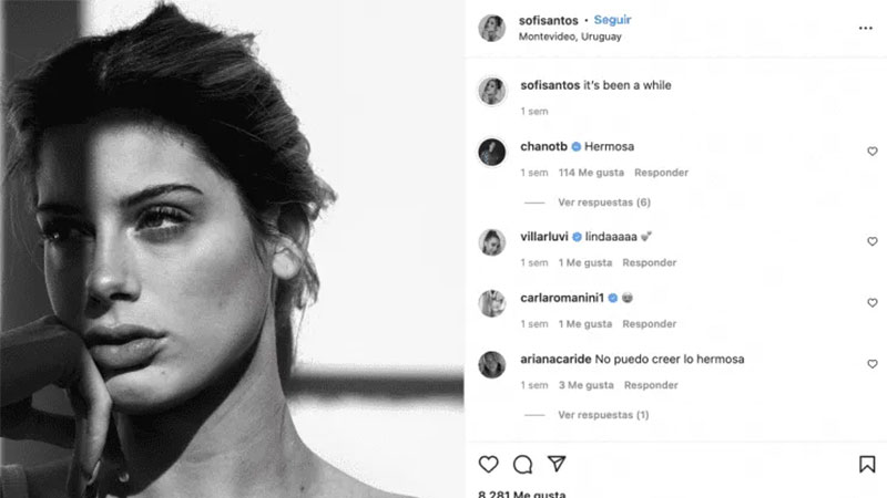 Para sorpresa de todos, a finales de diciembre el cantante fue visto muy acaramelado con otra joven en un evento en el Hipódromo de Palermo. La muchacha en cuestión es Sofía Santos de 23 años, influencer y modelo que cuenta con más de 120 mil seguidores en su Instagram. En las publicaciones de su perfil, el líder de Tan Biónica le expresa su amor con halagos y emojis de corazón.