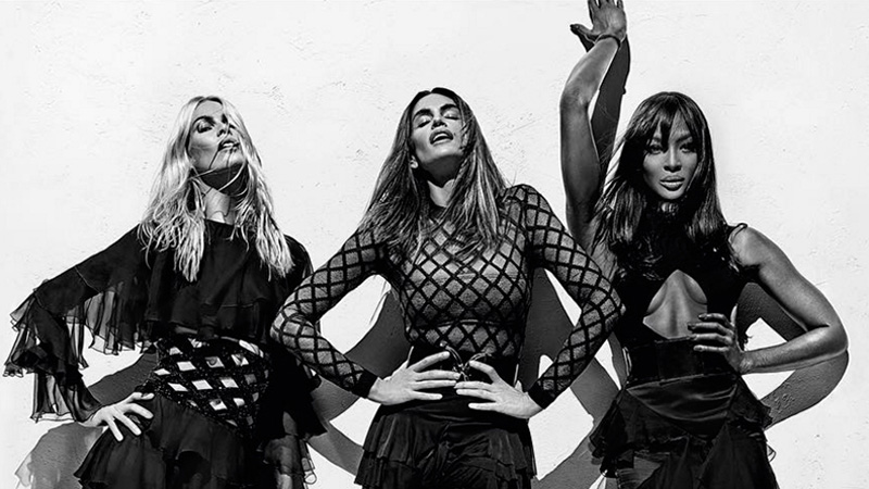 Y es que a pesar de sus años, las modelos siguen siendo relevantes para la industria de la moda. Claudia Schiffer con sus 45 años modela con su cabello rubio y unos rizos sobre su cara, Cindy Crawford a sus 49 años fue fotografiada con una ajustada y escotada chaqueta, y claro? su inolvidable lunar, Naomi Campbell, la primera afrobritánica en aparecer en la portada de Vogue París, posa a sus 45 un vestido ajustado y transparente destacando su delgada figura.