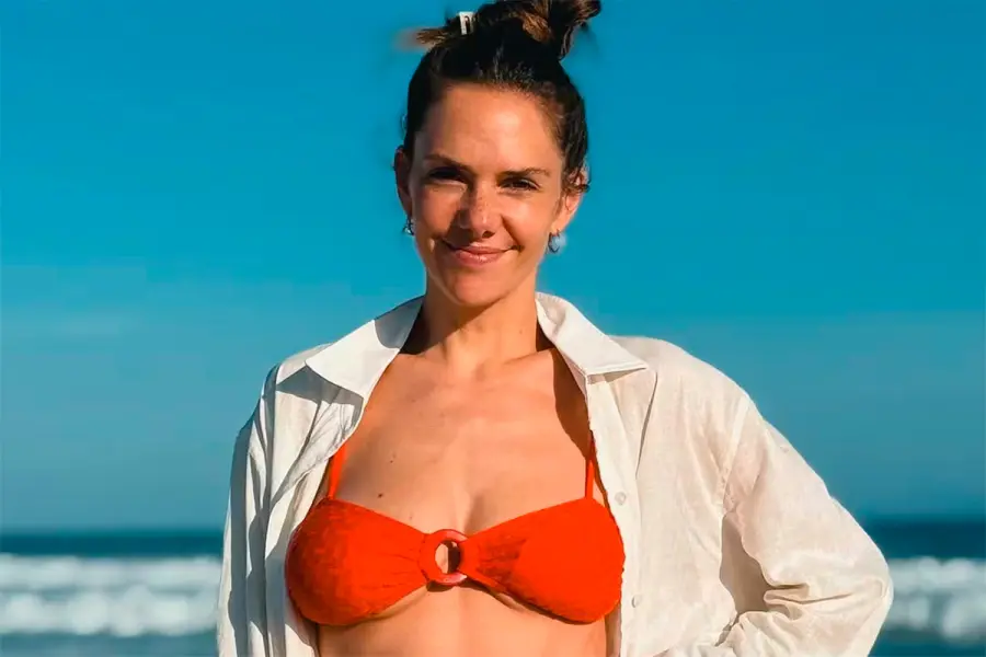 La actriz disfrutó de unos días de descanso y se consagró como referente de estilo con una bikini roja y una camisa blanca, la prenda estrella del verano. El look causó sensación en redes y recibió miles de elogios.
