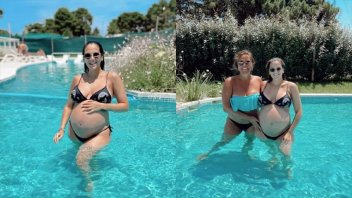 Junto a su pareja, Lucas Rodríguez, su mamá Nazarena Vélez y su hermano Thiago pasan el verano en Pinamar. Muy ilusionada por el pronto nacimiento de su primogénito, Barbie posó en la piscina.