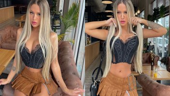 Y lejos de ser esta la excepción, la influencer se lució desde el interior de un bar con un sofisticado y sensual atuendo: en la parte superior, utilizó un corset negro con retazos de transparencias y escote corazón, al que acompañó con una minifalda tableada de estilo tiro alto que destacaba por el tajo sobre su pierna izquierda y la gran hebilla metálica en su cintura.