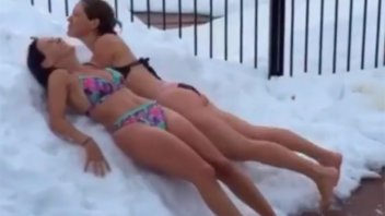 Eleonora Wexler posteó en Instagram un video en el que se observa cómo la actriz se tira primero de frente y luego de espaldas en un montículo de nieve, a pleno grito, para luego zambullirse en una pileta de agua caliente.