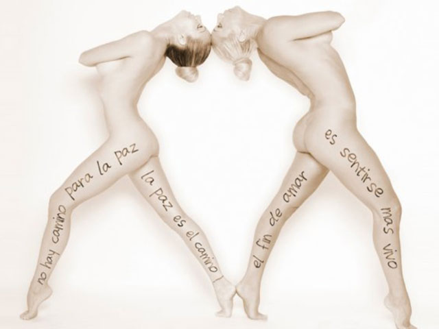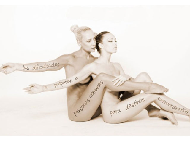 Dos bailarinas posaron desnudas y con mensajes en la piel para particular campaña fotográfica