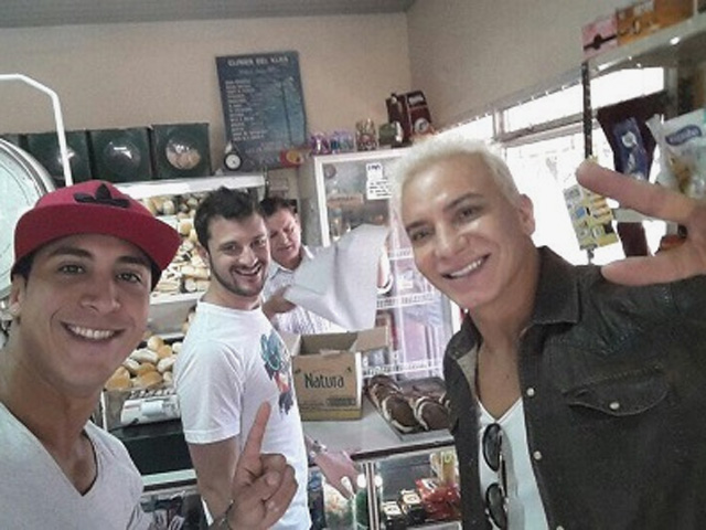 El Director Artístico de la famosa obra teatro Stravaganza fue quien subió fotos a la red social Twitter a través de su cuenta oficial @flaviomendoza. Allí se lo puede visualizar muy distendido, posando junto a dos amigos, y de fondo se lo ve al dueño de la panadería, “el señor Villanueva”, poniendo las tradicionales tortas negras en una caja.