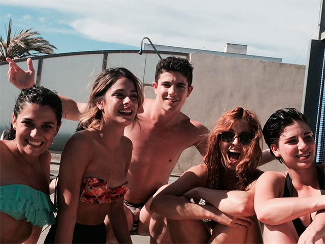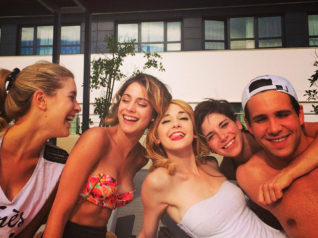 Se unió a las grabaciones que se están realizando en la ciudad de Sevilla para la tercera temporada de Violetta. En un impasse, aprovechó el sol europeo para broncease y divertirse con sus compañeros de elenco.