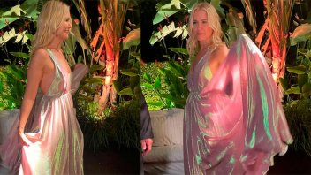No obstante, Valería Mazza brilló entre los invitados con su vestido de fiesta largo en una tela brillante en color tornasol, el cual se hizo en base al de un cuento de hadas, y que, además, tenía finos detalles que encajaban a la perfección con la costura de cuello en V y corte en A al bies.