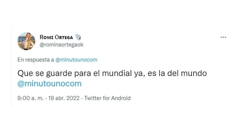 “Que se guarde para el mundial ya, es la del mundo”, comentó la mujer a través de su cuenta de Twitter.