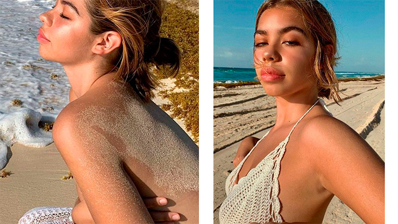 La hija de Andrea del Boca utilizó su cuenta de Instagram para compartir un secuencia de imágenes en una playa solitaria en la que se animó a hacer un topless, y levantar suspiros entre sus seguidores. "Water sign habitat", escribió la adolescente junto a las fotografías que publicó en las redes sociales.