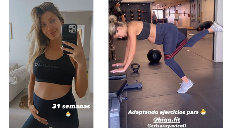 Acto seguido, se mostró en el gym, haciendo su rutina de embarazadas. "Adaptando ejercicios para la pollita", dijo junto a la imagen en la que se la ve haciendo un ejercicio ideal para marcar glúteos, con una banda elástica y la supervisión de un personal trainer.