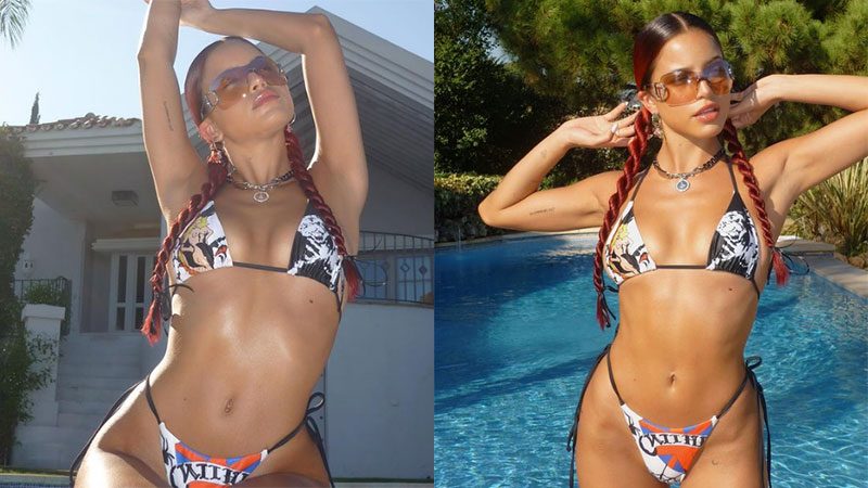 Entre las últimas instantáneas que compartió con sus seguidores, la novia de Duki se mostró con otra apuesta de alto impacto fiel a su impronta: combinó un corset rosa estilo armadura plástica con un jean celeste y un cinto ancho con arandelas. Dejó ver por debajo del pantalón las tiritas de una bombacha de microbikini negra, uno de sus fetiches de moda.