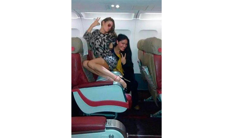 Sin embargo, sus dos caras quedan cada vez más a la vista. En Twitter, se filtró una imagen en la que, lejos de las lágrimas y la tristeza, se muestra posando muy contenta dentro del avión. La Griega no escarmentó en saludar al piloto del avión y realizar chistes durante todo el vuelo.
