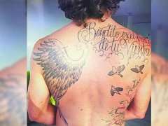 El galán de telenovelas es fanático de los tatuajes y en su espalda ya tiene desde hace un tiempo dibujados una enorme ala de ángel, un árbol con ramas y varios pájaros.
