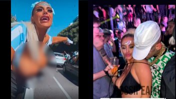 La influencer erótica, como se autodefine porque trabaja de vender material hot por sus redes sociales, se asomó por la ventanilla de un auto y con medio cuerpo afuera se subió la camiseta argentina que tenía puesta e hizo un topless ante la mirada de todos los hinchas que estaban en el lugar.