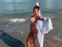Peña se lució con un look veraniego que combinó una bikini blanca con lunares negros, un cover up de tela blanca y los infaltables lentes de sol. En una de las postales más comentadas, se la ve saliendo del mar bailando suavemente al ritmo de las olas, irradiando naturalidad y alegría.