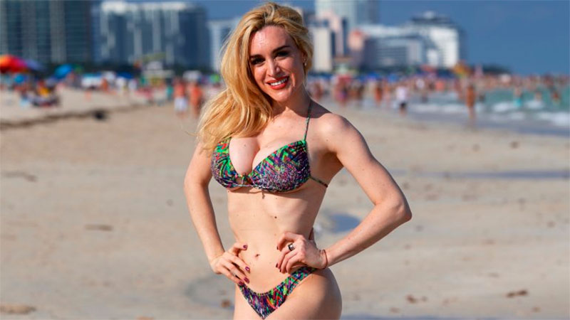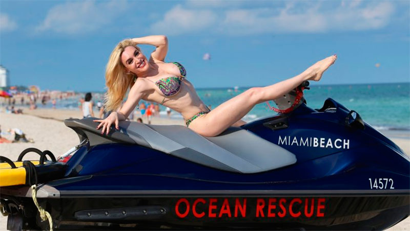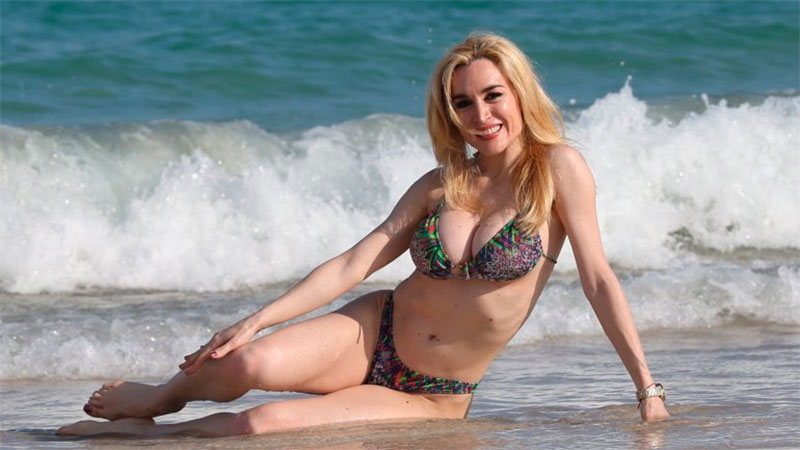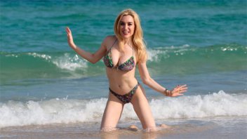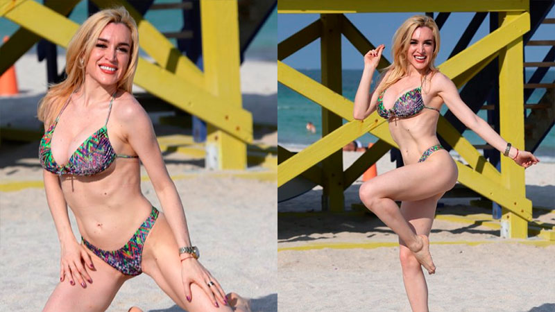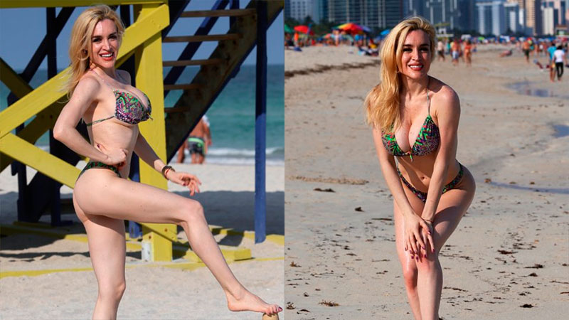 La imitadora posó en bikini en la playa y demostró ser dueña de una envidiable figura. La artista se reunió con empresarios en Miami, ya que desea llevar su espectáculo a Estados Unidos.